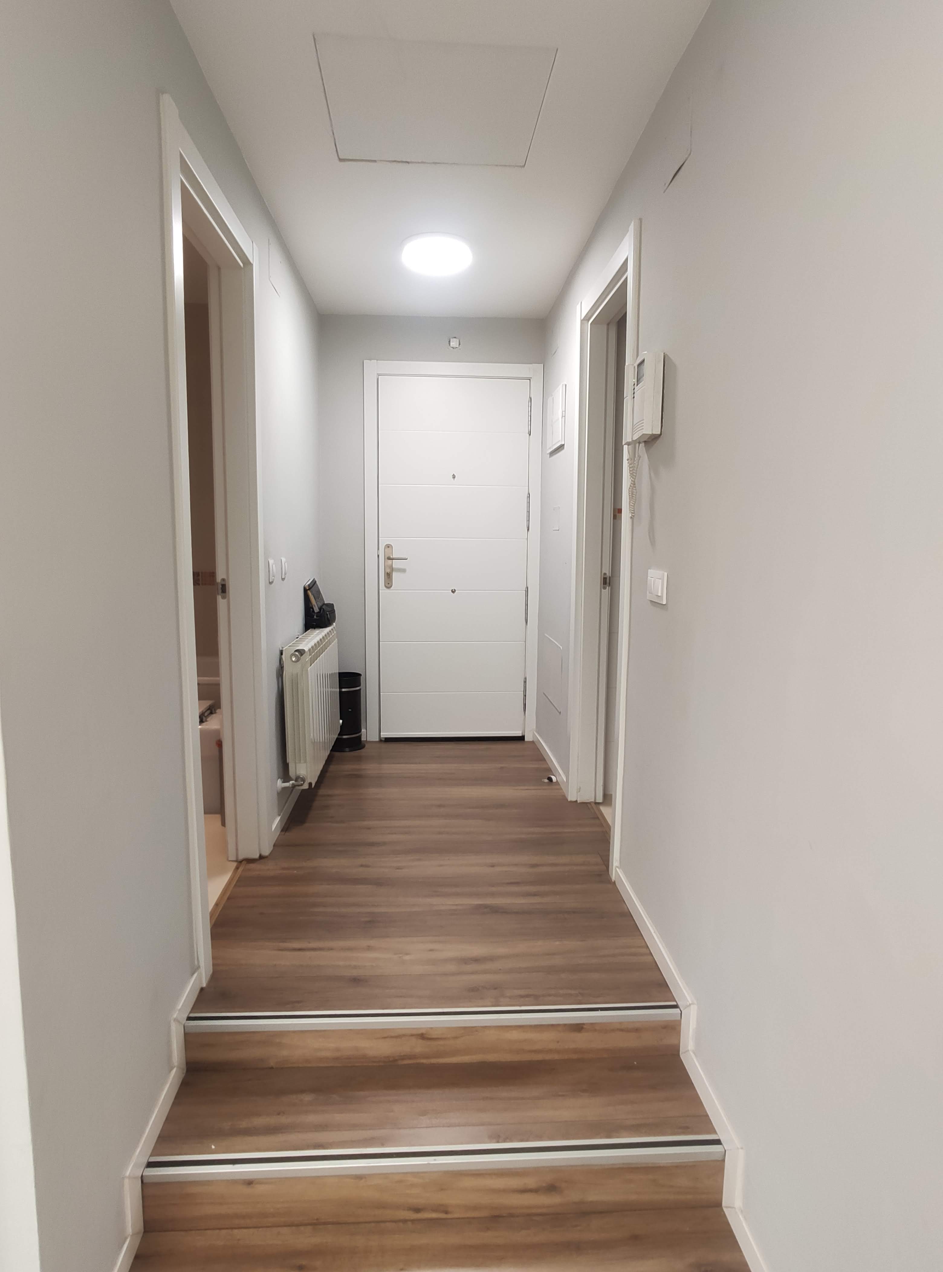 Previo a bajar por las escaleras, en el pasillo se encuentra instalado un armario empotrado.