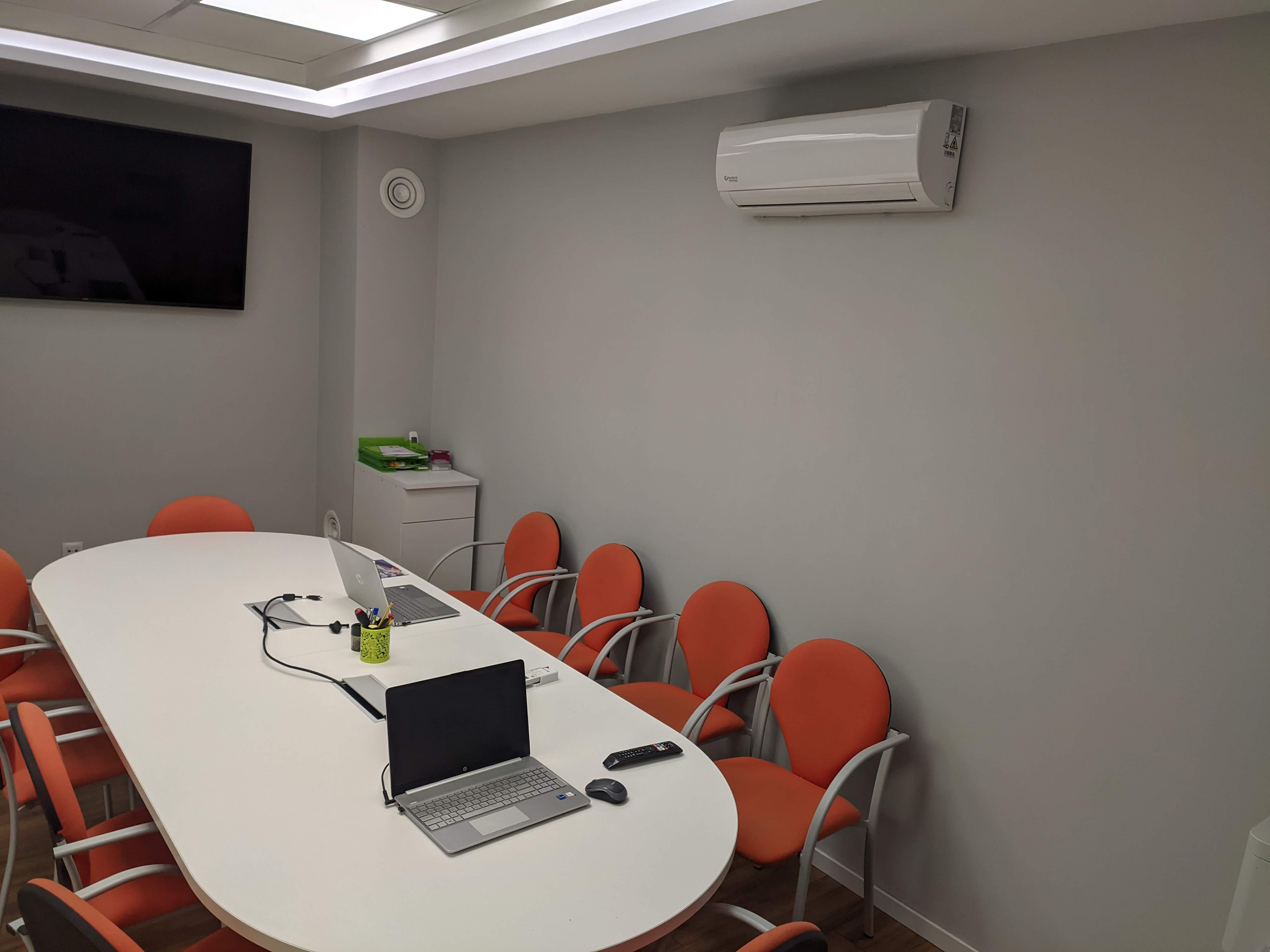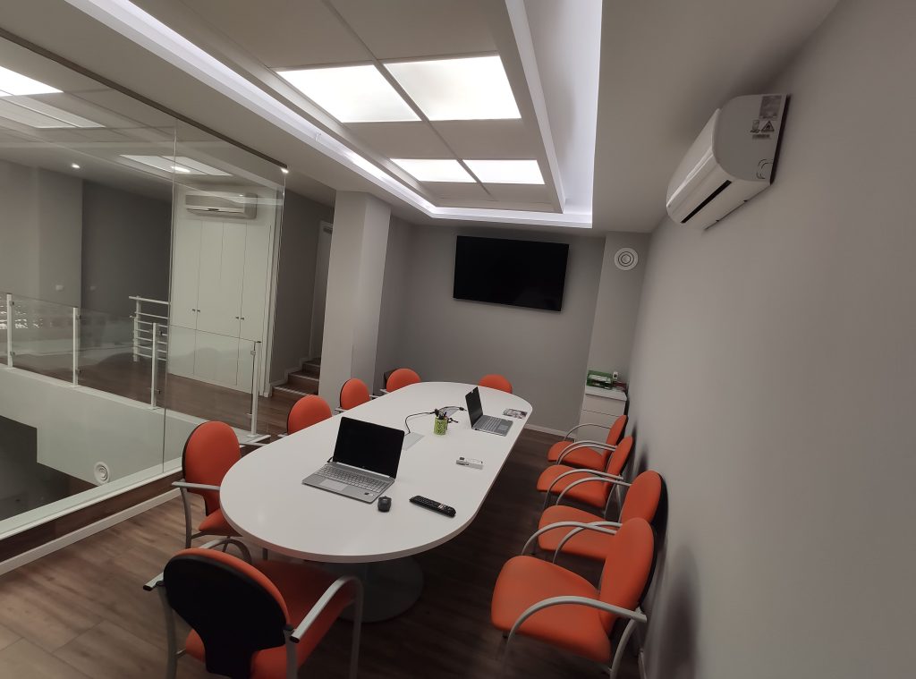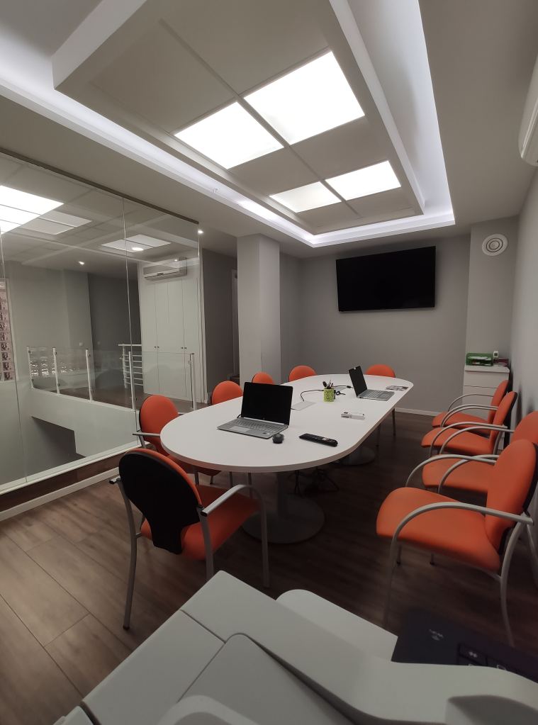 Dado que el estudio se utiliza como zona de trabajo, la sala en planta baja se aprovecha para «Sala de Juntas» y en la planta (-1), se da para el equipo laboral.